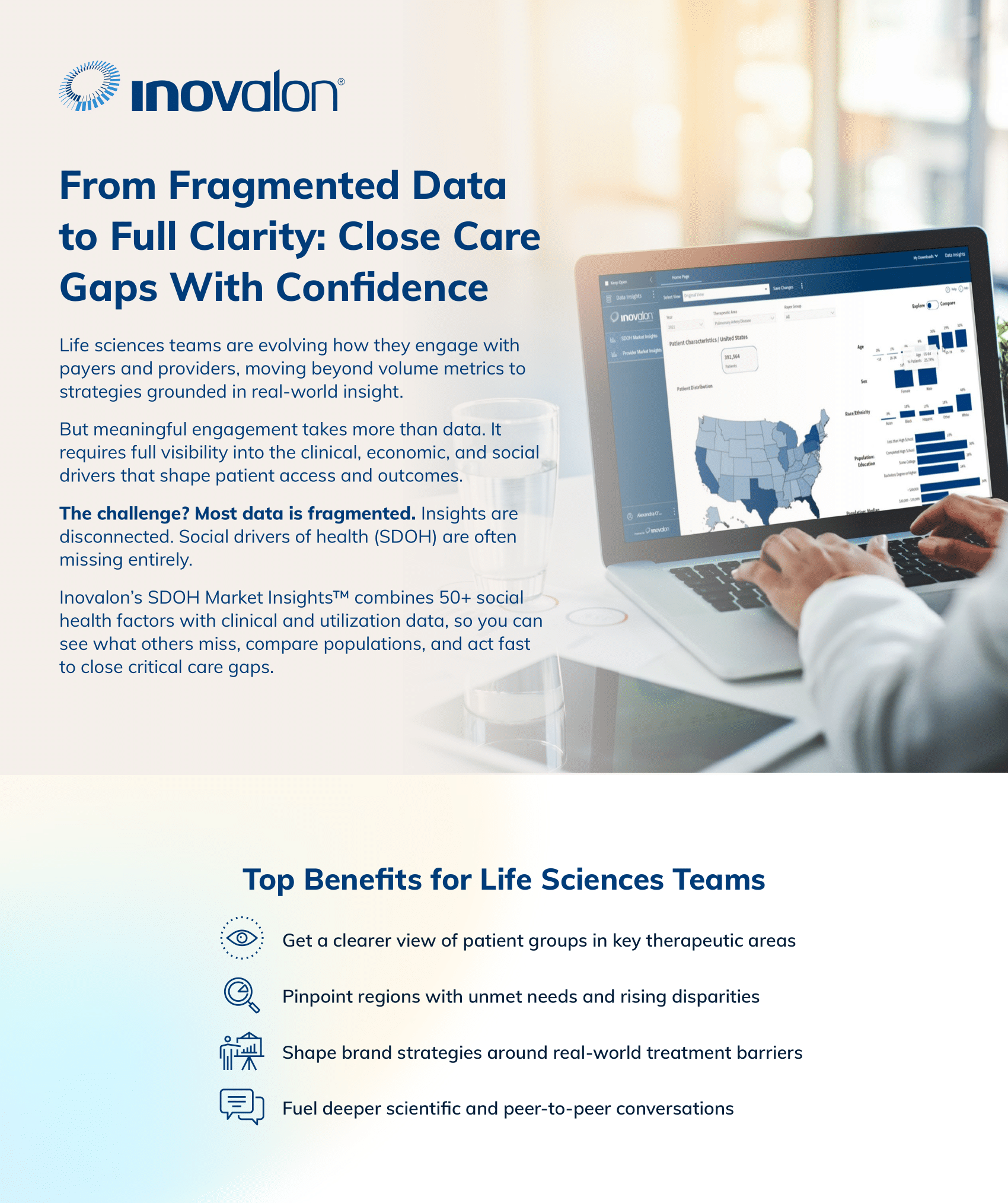 - How Inovalon's SDOH Market Insights™ combines over 50 social health factors with clinical and utilization data for comprehensive patient understanding.